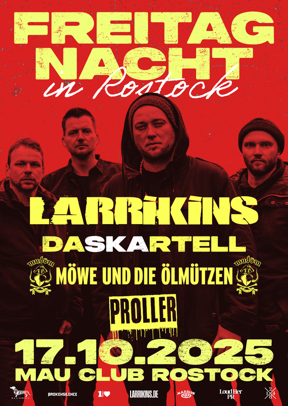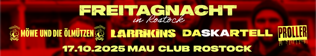 Am 17.10. kapern wir gemeinsam den Rostocker M.A.U. Club und bekommen dabei noch fette Unterstützung von den Ska Punkern »DaSKArtell« und der Hardcore Dampfwalze »Proller«.
